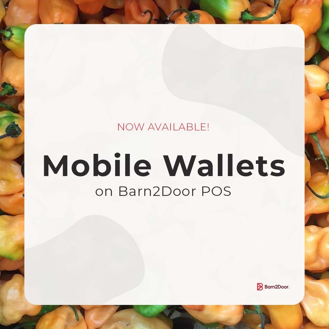 We are thrilled to share that our Barn2Door Point-of-Sale (POS) device now supports Mobile Wallet applications from Apple Pay and Google Pay. All existing Barn2Door POS applications were automatically updated to expand support for these new payment methods earlier this month.