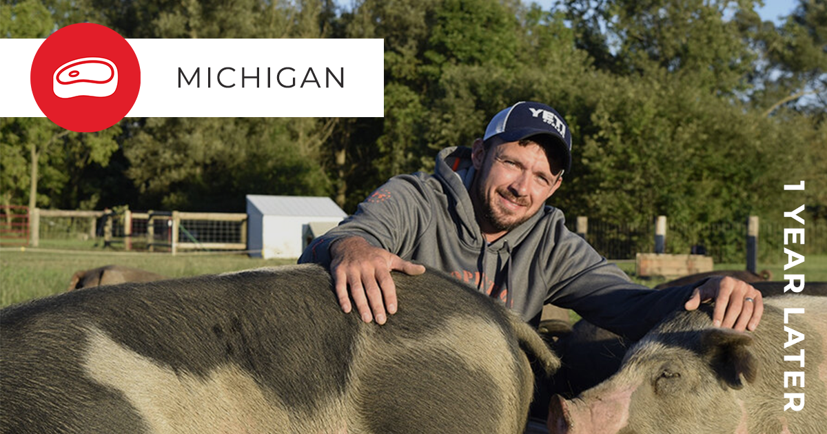 Thomas Bennett raises non-GMO, antibiotic-free pork and poultry in southeastern Michigan. Dedicated to implementing the highest standards of animal welfare, sustainability, and humane practices, animals on Bennett Farms live low-stress, happy lives, exercising their natural behaviors.